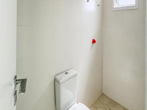 Piso porcelanato nas áreas sociais, e piso laminado nas áreas intimas