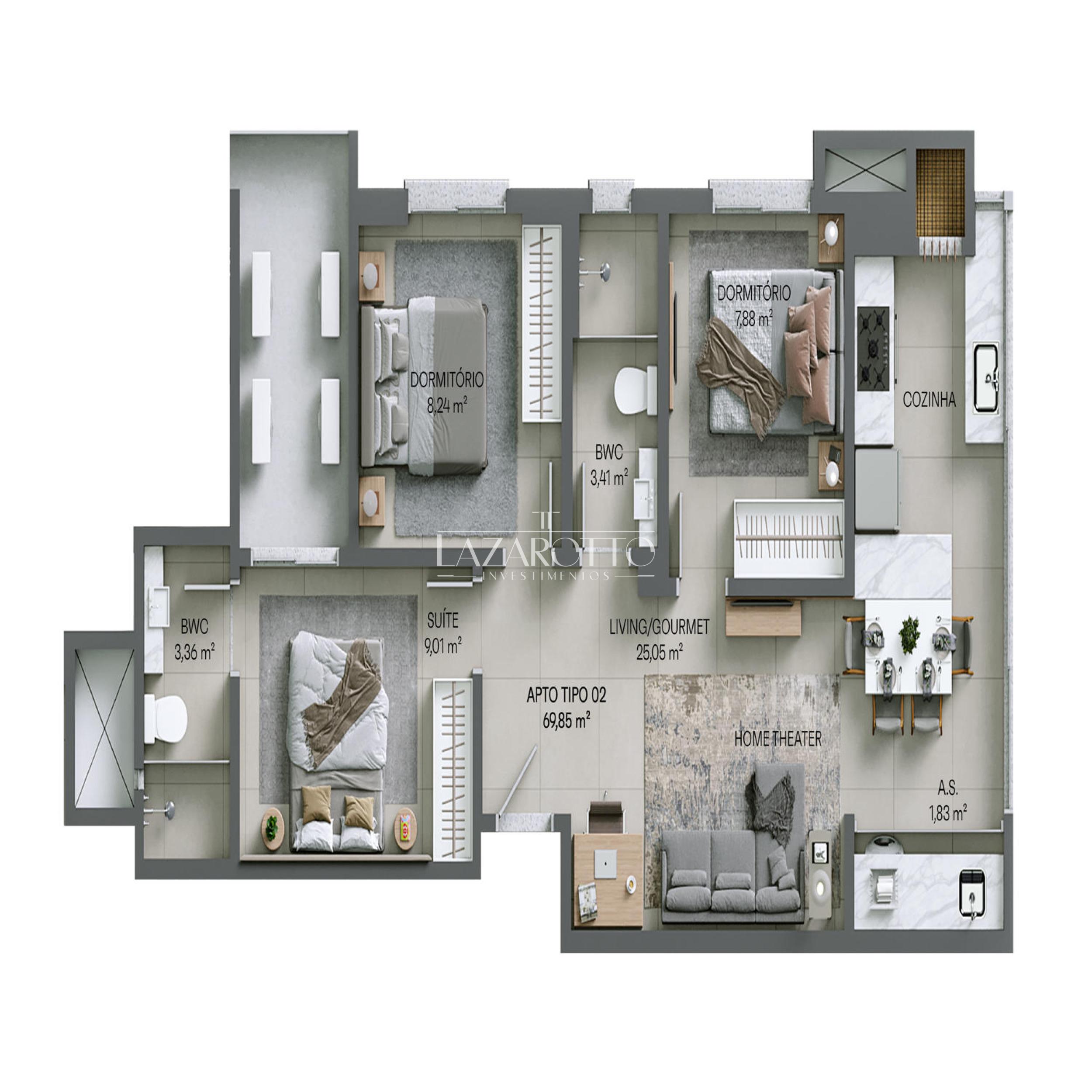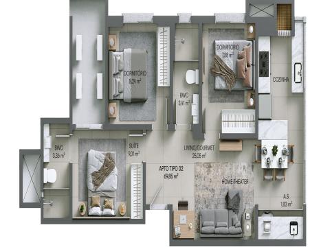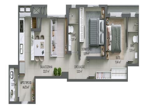 69 m² de área privativa