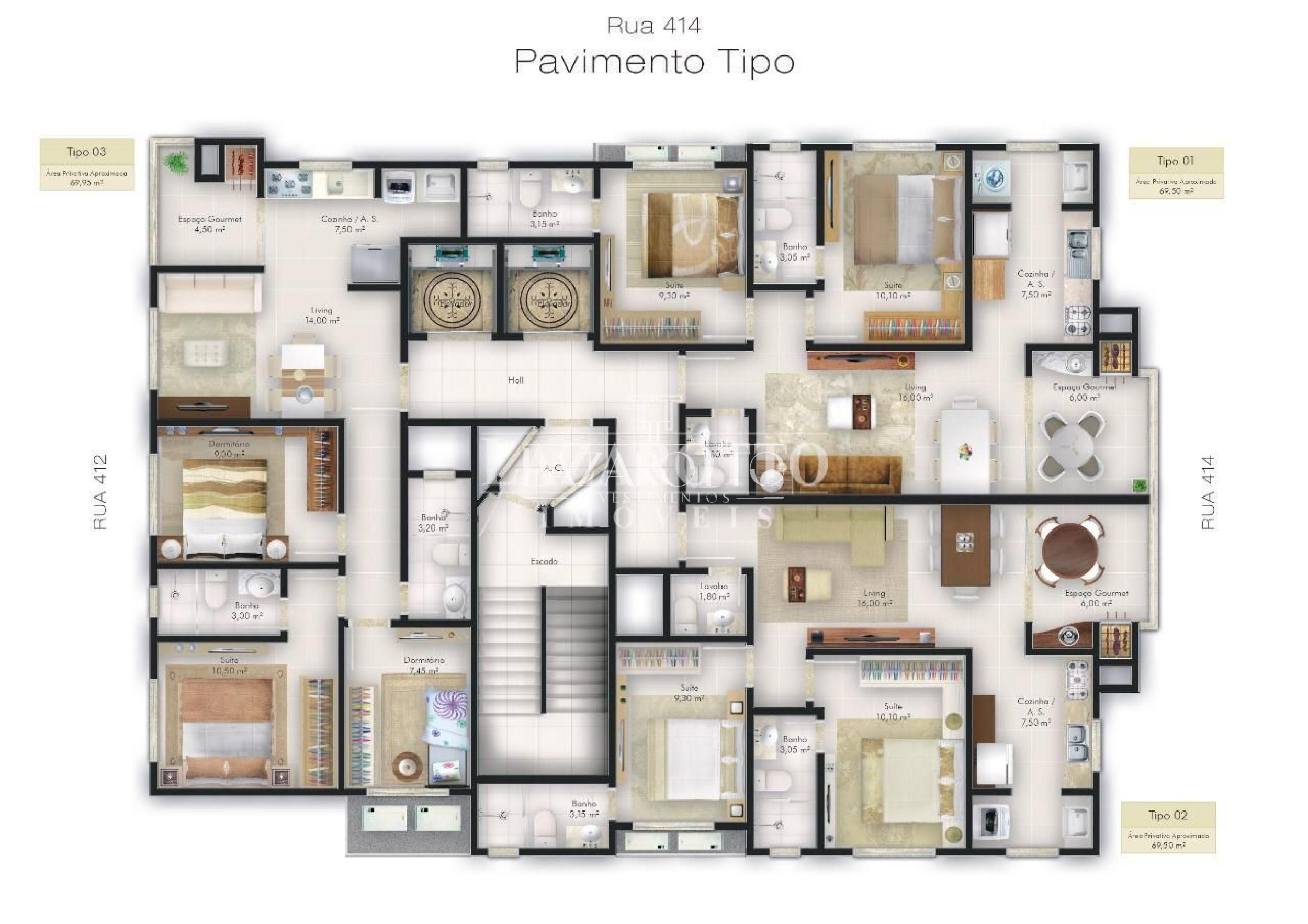 70 m² de área privativa