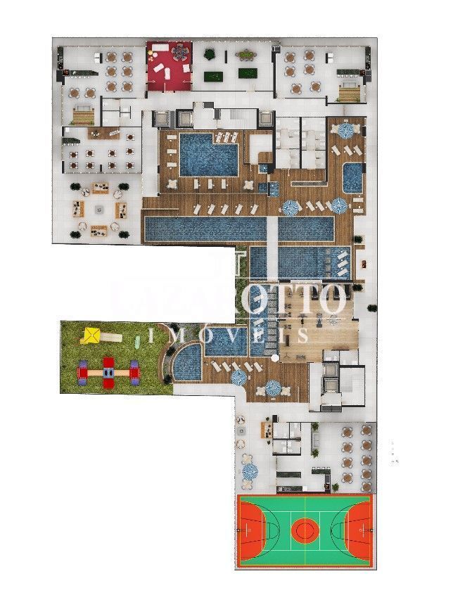 - Piso porcelanato nas áreas sociais, e piso laminado nas áreas intimas