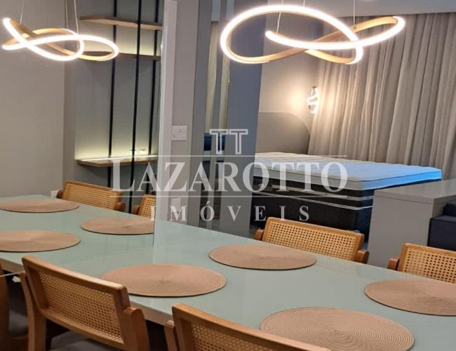 Este imóvel, bem localizado a poucos minutos da praia, oferece fácil acesso a diversos comércios e restaurantes. O empreendimento conta com infraestrutura completa, incluindo piscina adulta, academia, spa, salão de festas, lounge, pub, espelho d\'água e elevador, além de dois salões de festas. O imóvel possui acabamento em gesso, móveis planejados, ambientes integrados e está totalmente mobiliado e equipado, garantindo conforto e praticidade para quem busca qualidade de vida e conveniência.