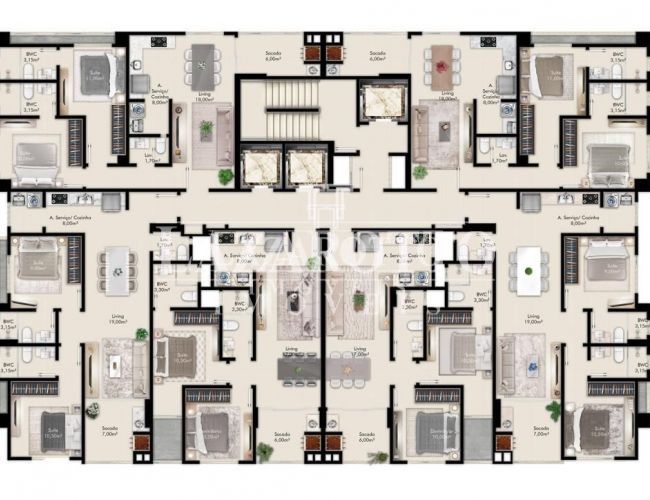 - 04 Elevadores (sendo 03 sociais e 01 serviços)